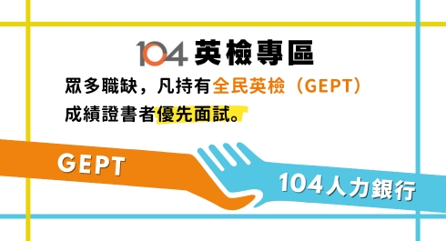 全民英檢與104人力銀行合作:凡持有GEPT證書,響應企業優先面試